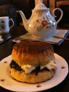 Istallet for Afternoon Tea blev det ”Late night tea” ikvall, och vi lyckades fa tag pa enorma hembakta scones pa marknaden idag.