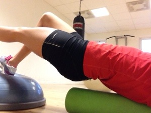 Årets sista balans-akts-foto från gymet:) Ypperlig kombination, med foam-roller och Bosuboll! Superbra övning för mage/rygg och rumpa.