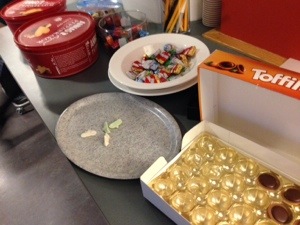 Det ständiga godisätandet på jobbet. Inte så jäkla lätt att hålla ett godisförbud när det finns ständig tillgång.
