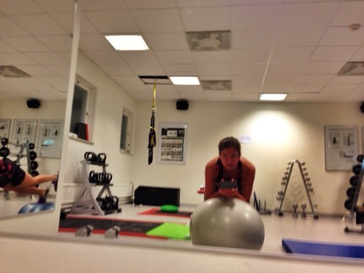 Plankan med armar på pilatesboll och fötter på Bosuboll. Vill man så kan man lyfta på ett ben i taget för extra svårighet. Eller rulla armbågarna framåt/bakåt:)
