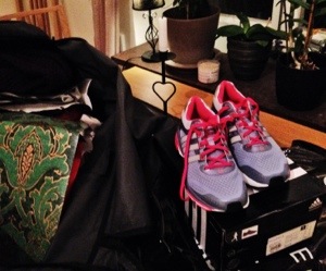 Väskan, The bloody bag, har orsakat mig en hel del pina idag, och ryggen har tagit rejält med stryk. Jag som inte sprungit sedan det ödesdigra ”bil-lyftet” var igårkväll lite optimistisk när jag packade. Ryggen hade blivit bättre, så löparskorna fick följa med. Beskåda nämligen, mina nya fina skor!!