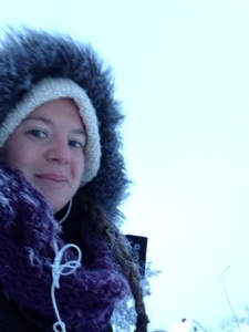 Nu: iklädd enorm lånad fleecetröja och mjukisar framför vinterstudion. Fortfarande lätt förundrad över min ikapp-sovning…