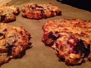 Banan och hallon/blåbärskakor, med havregryn, proteinpulver och lite annat random ikastat