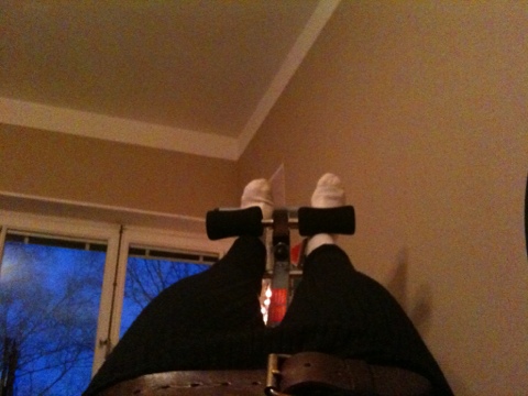 Återigen i ryggbrutet tillstånd alltså. Dagens planerade spinning ställdes in, träning går ej. Och ett stort område på yttsidan av låret är bortdomnat. Så nu är jag tillbaka på mattan. Eller snarare, i sträckbänken...