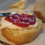 Men, for att kunna trana maste man ata. Och idag fick jag antligen en riktig afternoon tea pa ett cafe medan regnet oste ned utanfor. Det ar verkligen my cup of tea. Varm scone med kramig gradde och sylt.