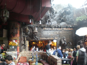 "Stable Market". Överallt fanns enorma statyer av hästar, gjutna i väggarna här till exempel...