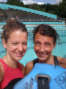 Eriksdalsbadets utomhusbassäng visade sig passa utmärkt för wetwest. Det var längesedan jag varit där och trampat så jag hade nästan glömt hur härligt det är att vara utomhus! Men det bästa var helt klart sällskapet. Tiden bokstavligen flög förbi, och vips hade en timme gått… Jag fattade ingenting, vi hade ju precis börjat, och babblade på som bäst:)