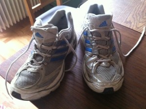 Allt var packat och klart. Trodde nästan jag glömt sport-topen, men den var med. Drog upp skorna ur väskan. Och hjärtat sjönk som en sten: