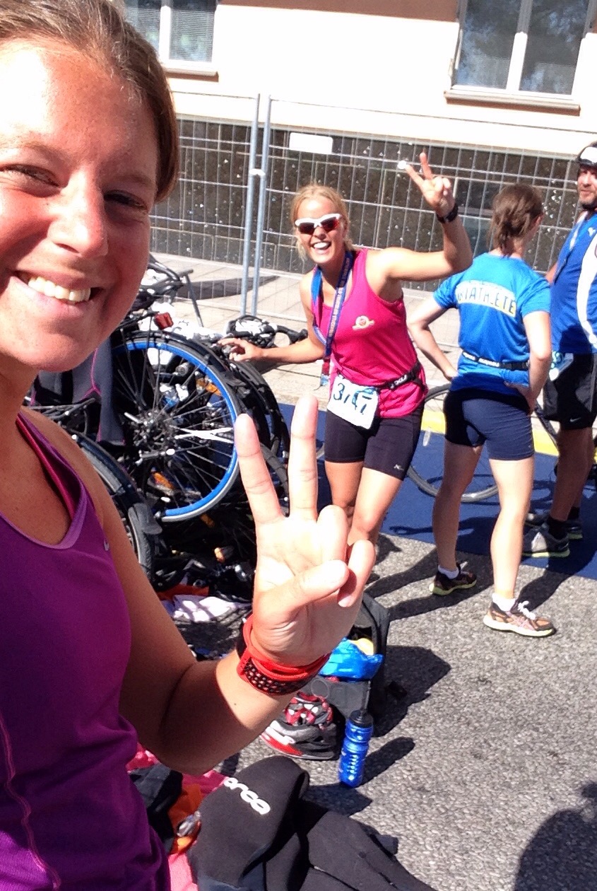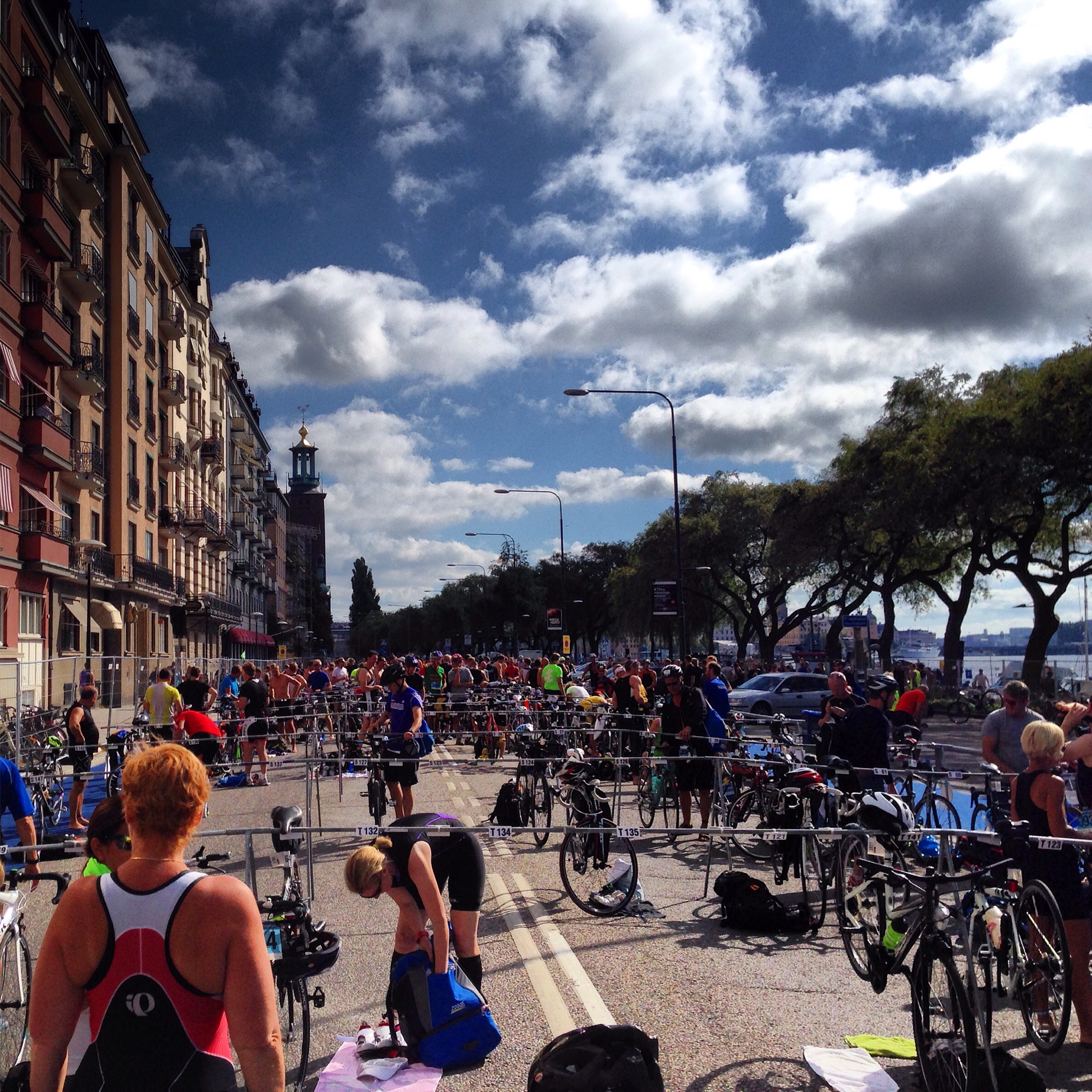 När det väl var dags att hoppa i vattnet insåg jag att vågorna faktiskt var ganska höga. Simningen- 750m i Riddarfjärden utanför stadshuset, blev en ganska helvetisk upplevelse. Svalde litervis med vatten och trodde aldrig att jag skulle komma fram. Motvind, strömmar, höga vågor. Nja. Inte så kul. När jag väl kom upp ur vattnet var jag darrig och yr, men när jag lyckats få av mig våtdräkten insåg jag lättat att jag i alla fall skulle slippa skammen att fastna i dräkten..