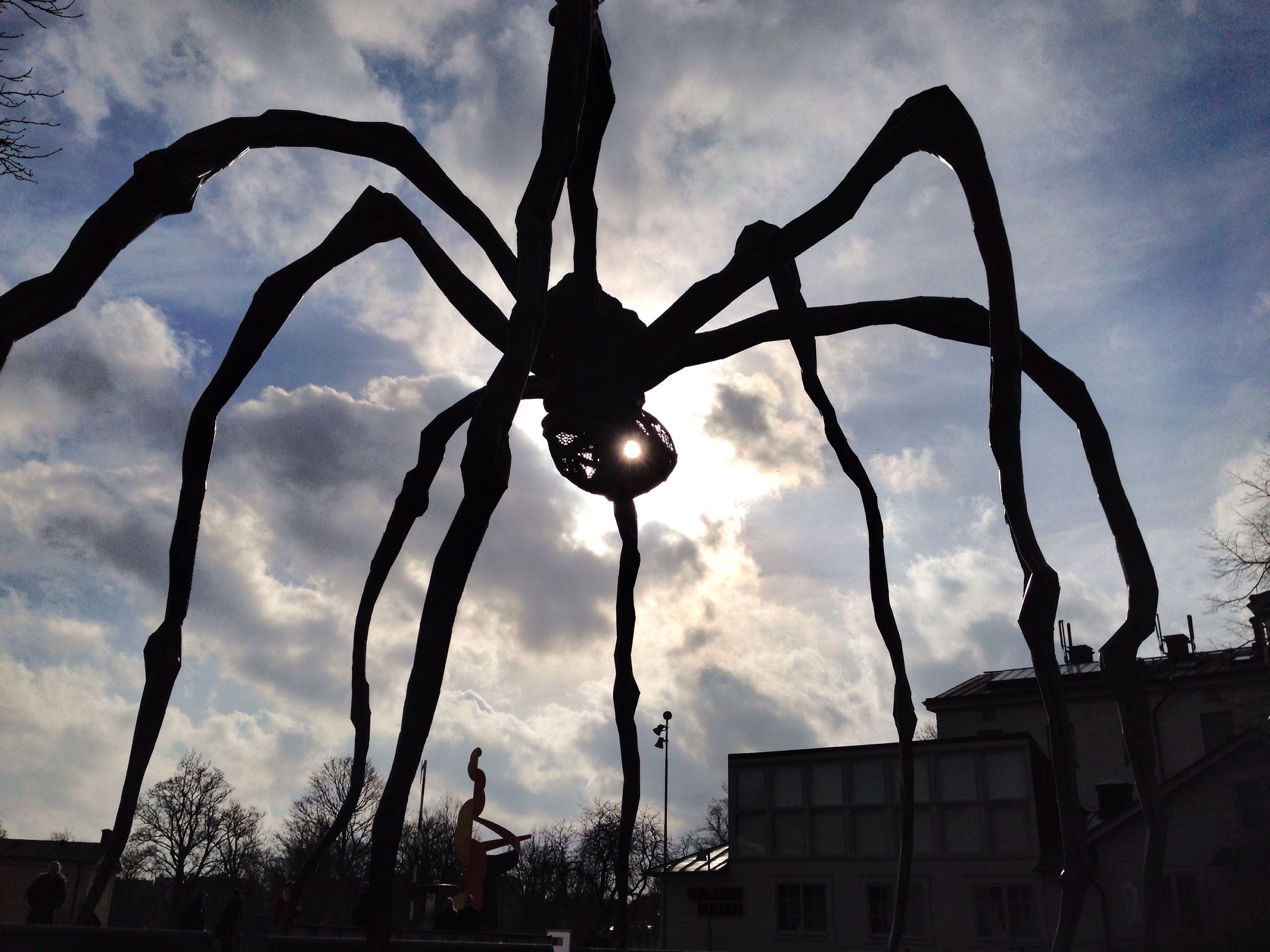 Tips nummer två. Är du rädd för spindlar? Ge dig ut till Skeppsholmen i Stockholm. En utställning av konstnären Louise Bourgois finns just nu på Moderna Museet. Hennes skulptur ”Maman” står utanför, och den tjuvkikade vi på under en fin söndagspromenad…