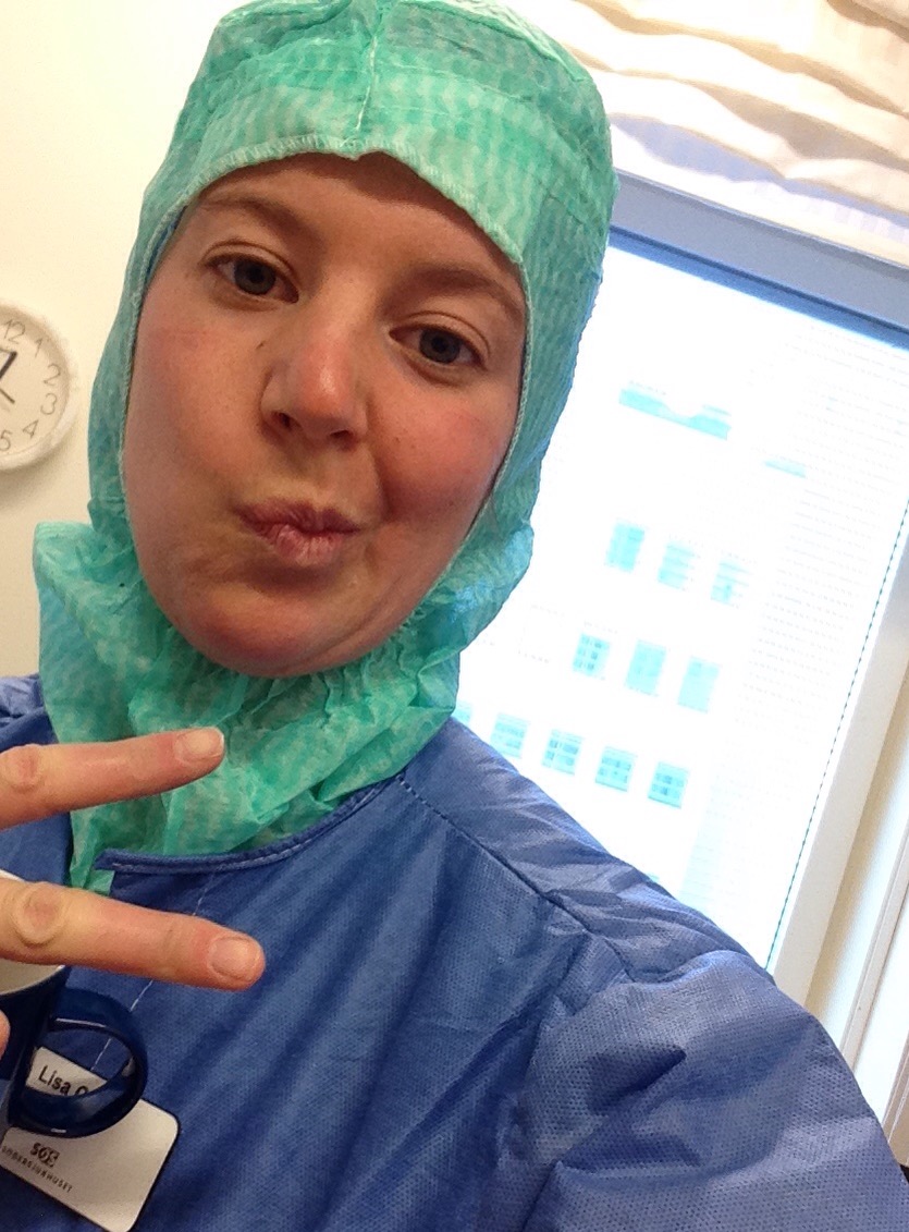 På ortopeden är operationerna om möjligt ÄNNU mer sterila än på kirurgen. Papperskläder, dubbla mössor, munskydd med visir. Och så en steril rock och dubbla handskar på det. Inte en bakterie får krypa in i en nyinsatt knäprotes (till exempel), för då är infektionen och re-operationen ett faktum….