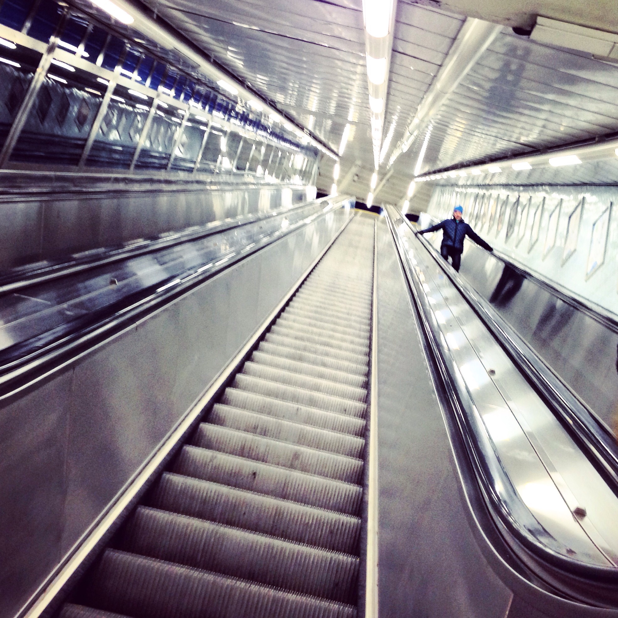 Att ta sig uppför de stillastående tunnelbanorna vid Slussen var INTE en piece of cake. Men jag gillar träningströtthet…:)